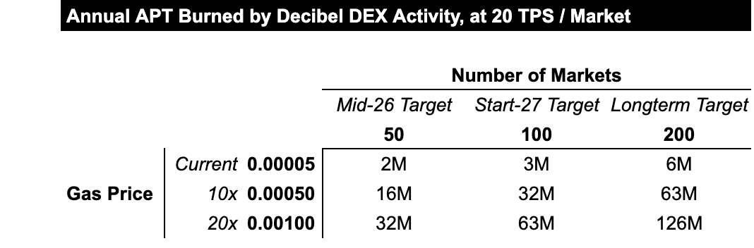 Burns increasing: Proposed higher gas fees + Decibel DEX activity generating higher TPS and burning significantly more APT annually, scaling with market growth