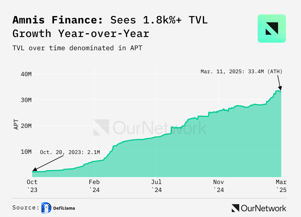 Since launching in late 2023, Amnis Finance has seen explosive growth—up 1,882% year-over-year. In Q1 2025, monthly active wallets grew 181%, making it the fastest-growing protocol on Aptos. Amnis is also one of the earliest participants in the Aptos Foundation’s new LFM program, and just announced its Token Generation Event (TGE) last week.