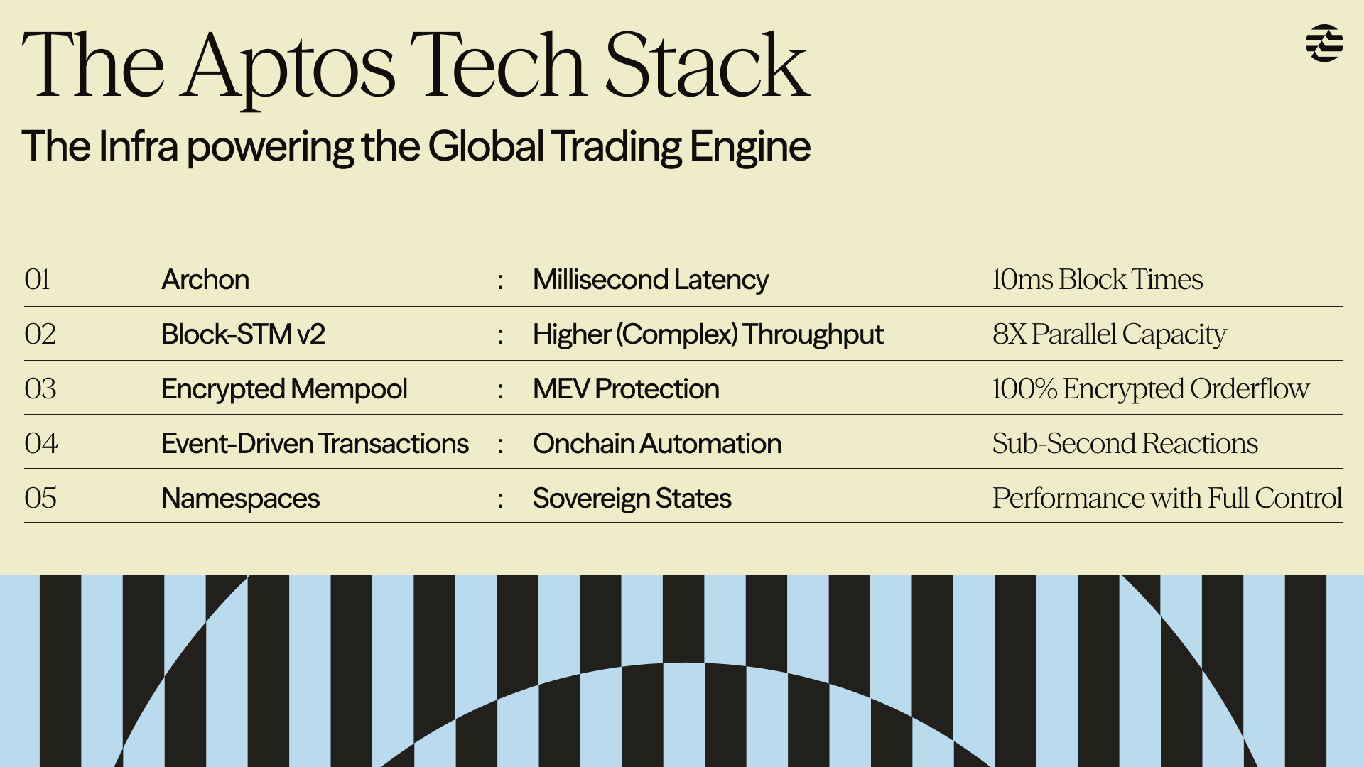 The Aptos ecosystem started the year with a renewed mission and purpose: evolve the network from a high-performance L1 to production-grade infrastructure powering real value, assets, and applications at Internet scale. The next wave of protocol innovations will compound this progress and establish Aptos as the Global Trading Engine.
