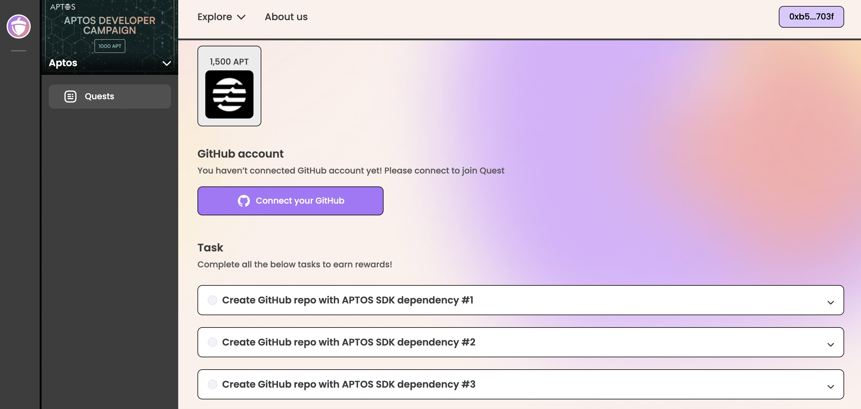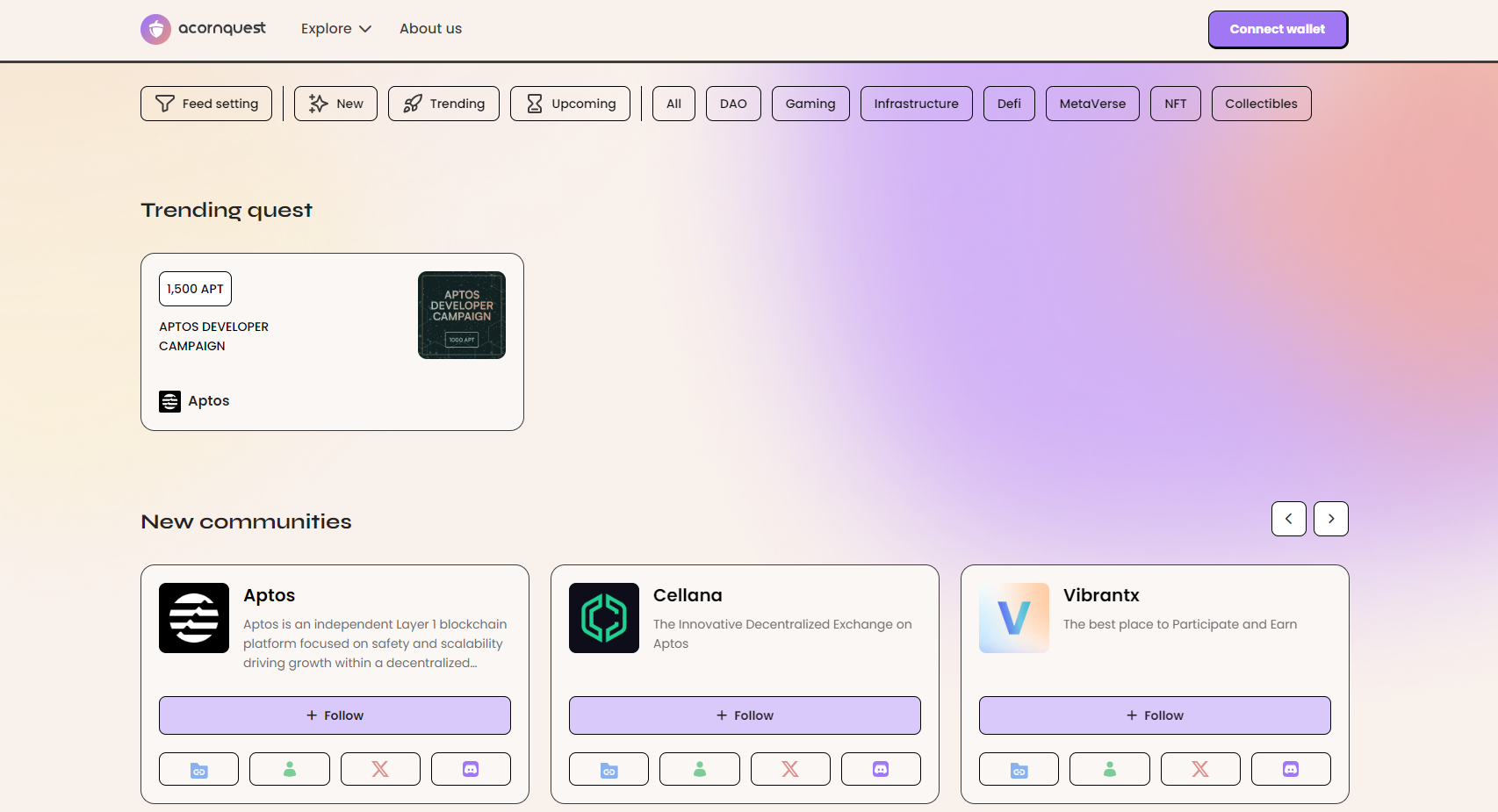 AcornQuest is the first native quest platform on Aptos, built to educate users about the vibrant Aptos ecosystem, products and protocols.