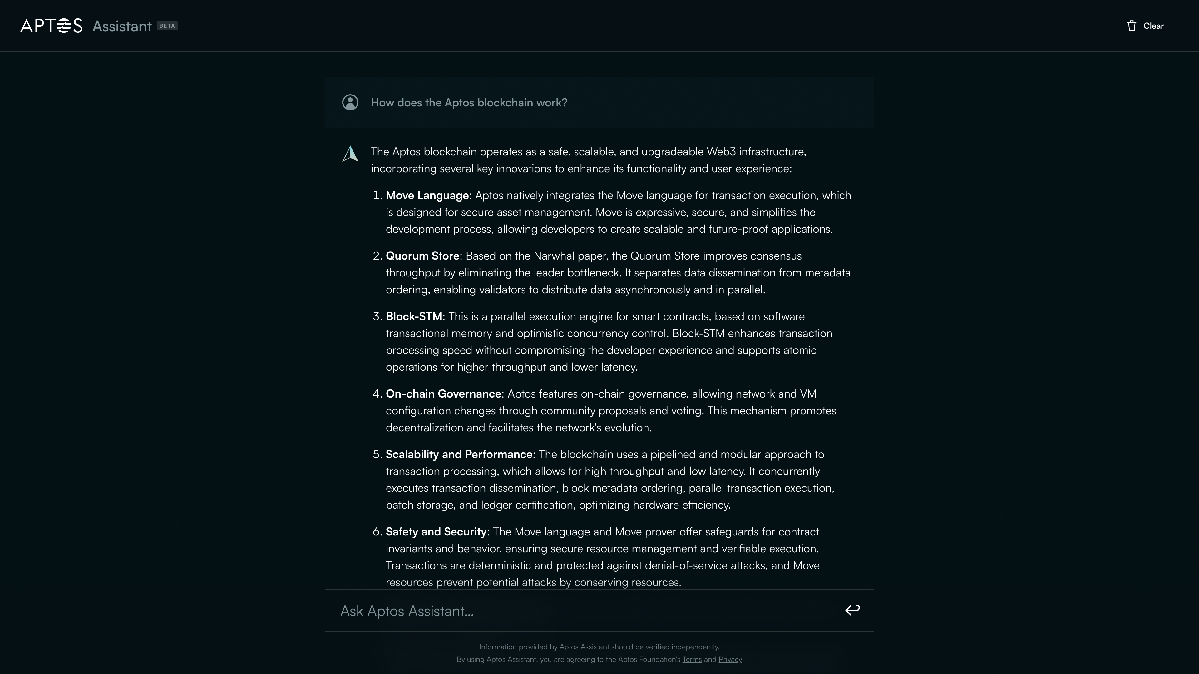 Your AI-powered companion, designed to streamline and simplify your experience with smart, accessible support as you navigate the Aptos network.