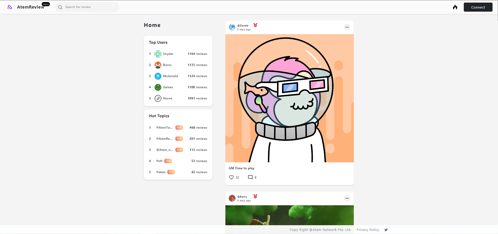 On top of the protocol, Atem has built two products, a web3 content sharing platform AtemReview and web3 community social platform AtemChat. AtemReview has attracted over 130k users, created over 300k content on Arweave, generated over 2 million interactions.