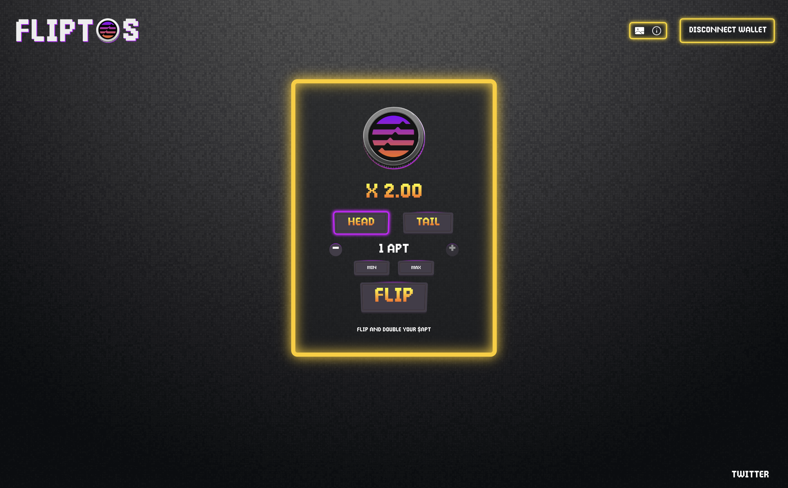 Fliptos is the first decentralized gaming platform that leverages Aptos Roll randomness. Our vision is to build a probably fair gambling experience on Aptos. Our code is open source and we offer low fees as well as instant rewards.