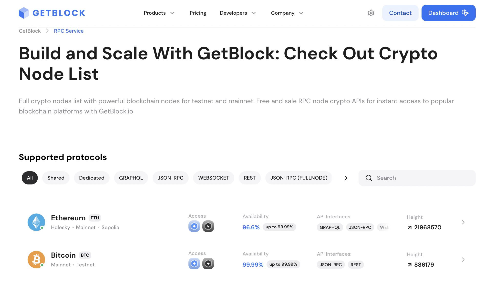 GetBlock is a blockchain node infrastructure provider that offers API access to full nodes of various blockchain networks. It enables developers and enterprises to connect to blockchain networks without running their own nodes, providing RPC, REST, and WebSocket APIs for seamless interaction with blockchains.
