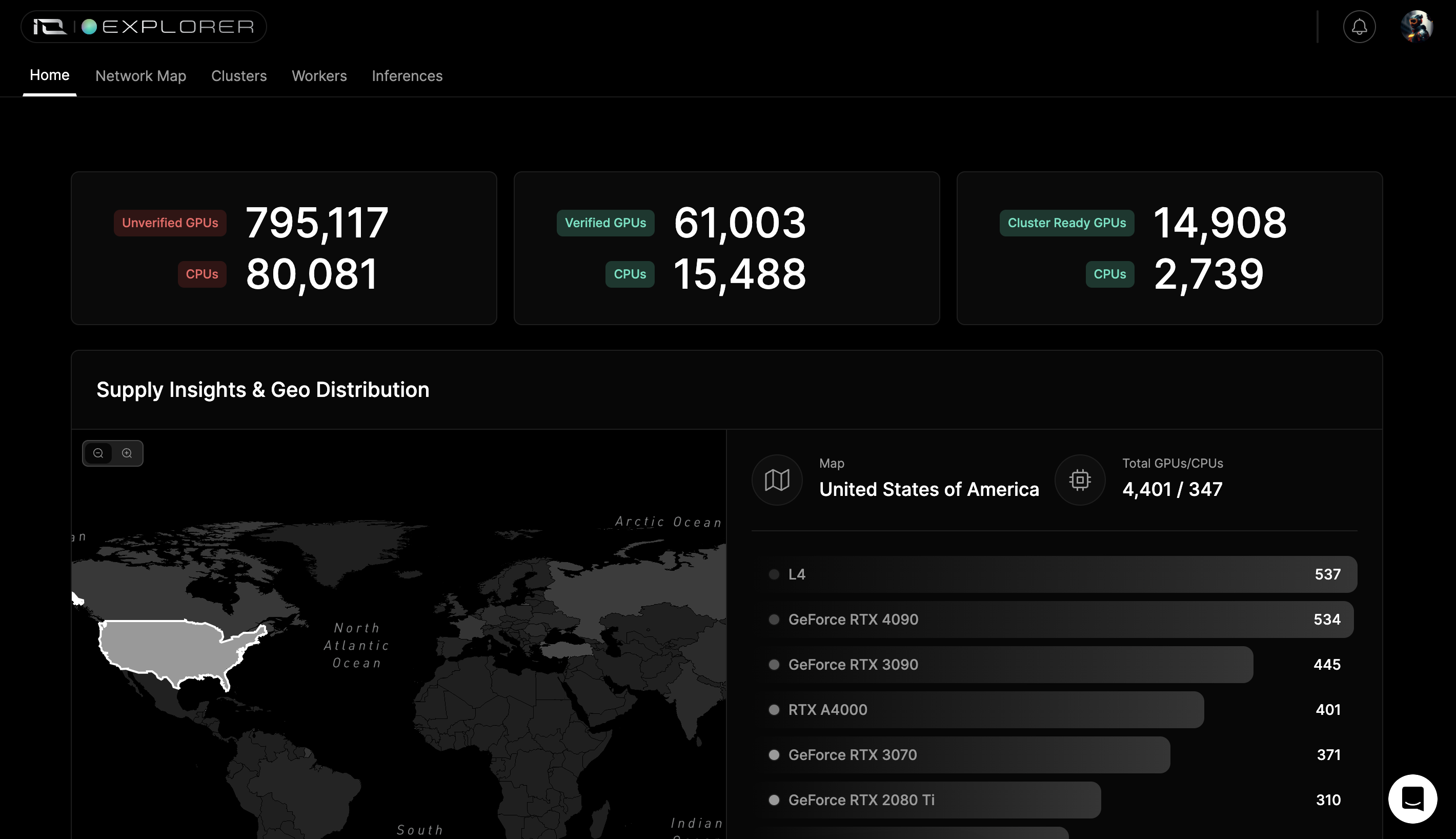 io.net is the largest GPU decentralized infrastructure network (DePIN) capable of serving the full lifecycle of AI/ML workloads, from model training to inferencing. With over 50K worker nodes and over 60K compute hours served in under four months since launch, io.net is already reducing costs for AI/ML companies while helping data centers, miners, and consumers leverage underutilized GPU capacity to earn revenue. io.net is uniquely capable of creating clusters of tens of thousands of GPUs, whether they are co-located or geo-distributed, while maintaining low latency for deployers. In addition to direct suppliers in the network, DePINs like Render (focused on image rendering) and Filecoin (focused on storage) also supply their compute capacity to io.net in order to access monetization from AI/ML companies. io.net is enabling an ecosystem of products and services built on top of compute as a currency, and is bringing AI to the world by reducing costs for AI/ML innovators.