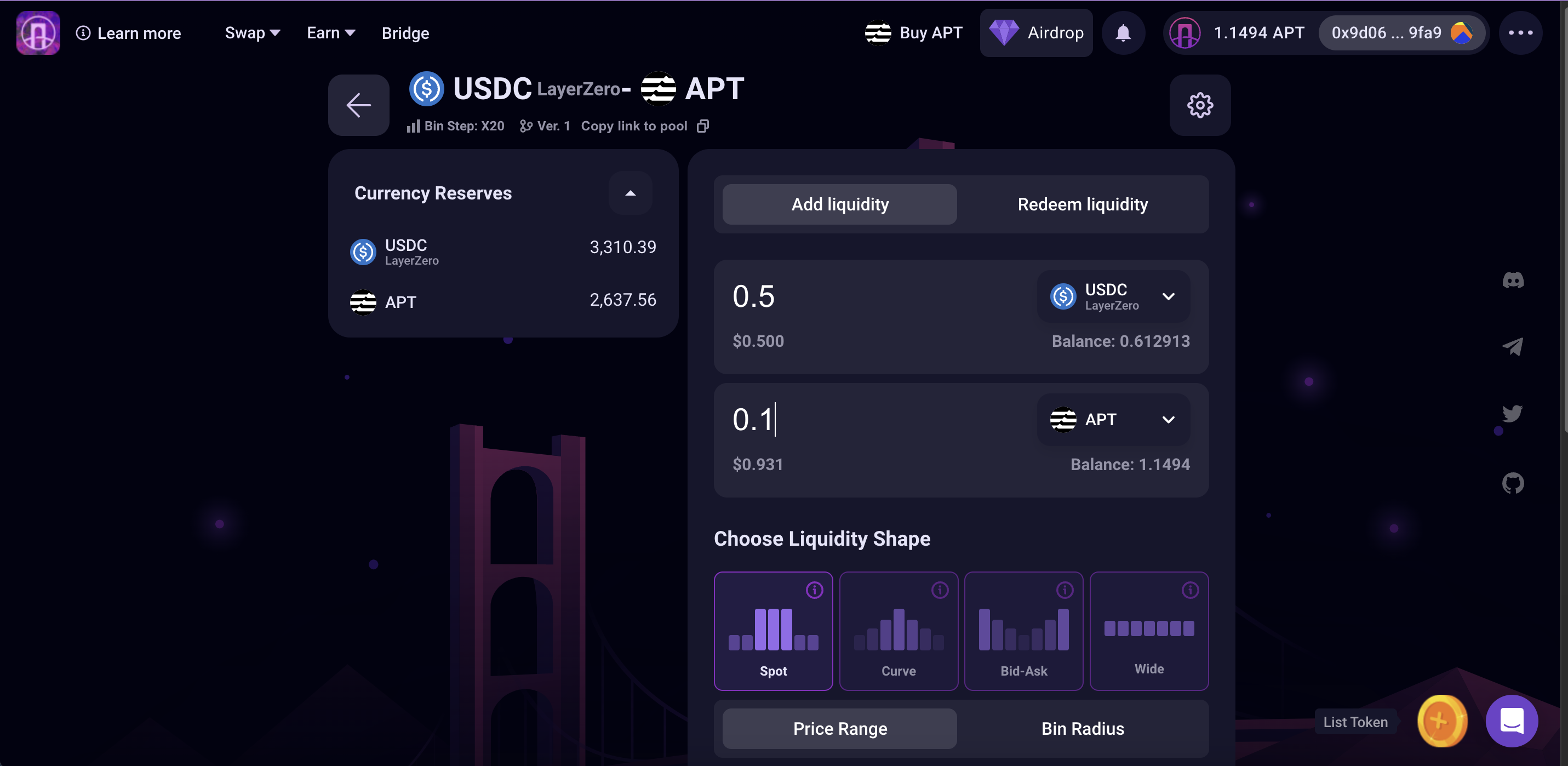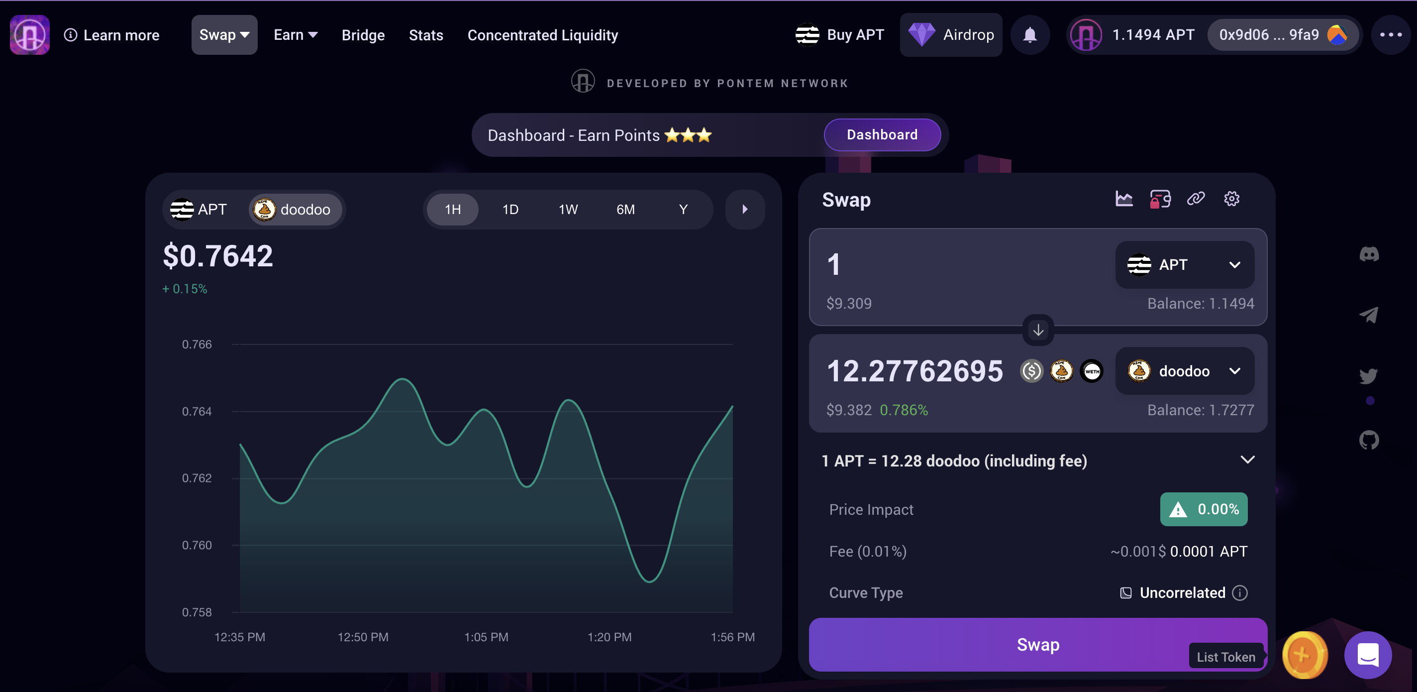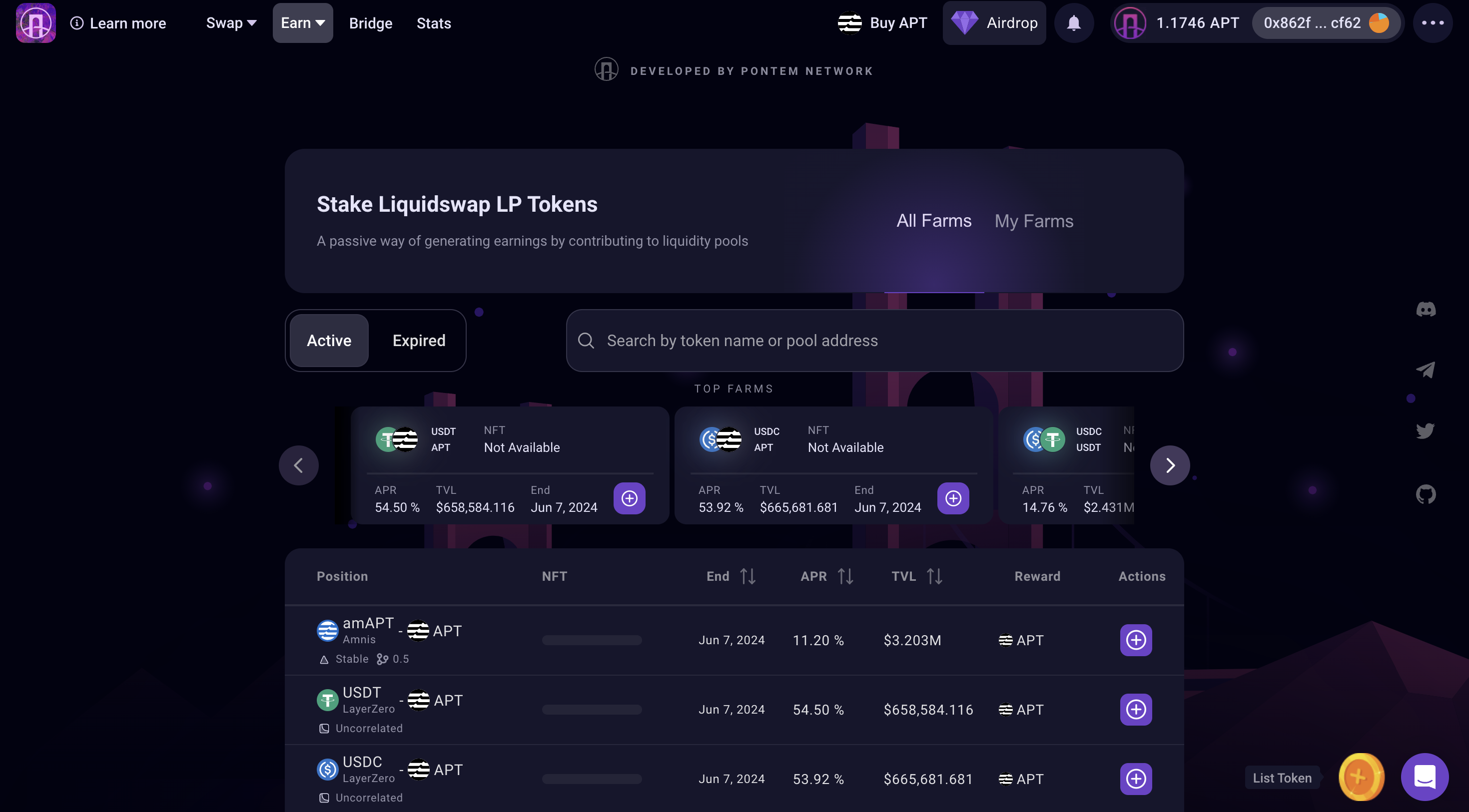 Liquidswap by Pontem is the most popular decentralized exchange (DEX) on the Aptos blockchain. It's built on Move for maximum security, with multiple audits. With Liquidswap, you can swap tokens, and earn through yield farming, staking, and liquidity pools. You can also bridge tokens from one blockchain to another.