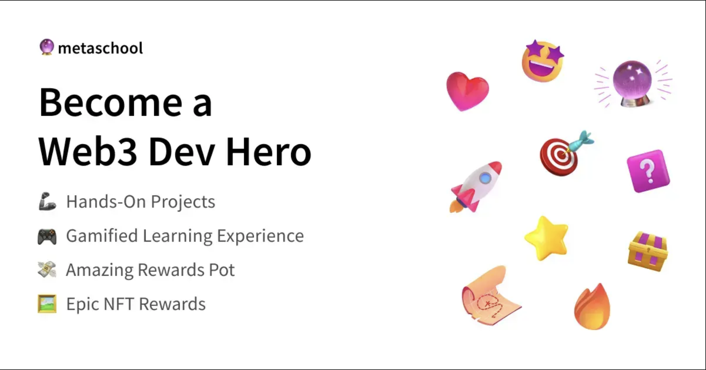 Metaschool is a Web3 education platform for developers to enter Web3 by building and shipping DIY projects on the platform. The platform has a community of over 100K devs and is funded by Sequoia. Metaschool's mission is to help the next 10M developers enter Web3 and elevate the state of decentralized internet. Developers have access to advanced tools such as integrated development environments and blockchain testnets, which allow them to create everything from simple dApps to complex blockchain solutions. Metaschool also organizes dev meetups, workshops and hackathons to help developers find opportunities.