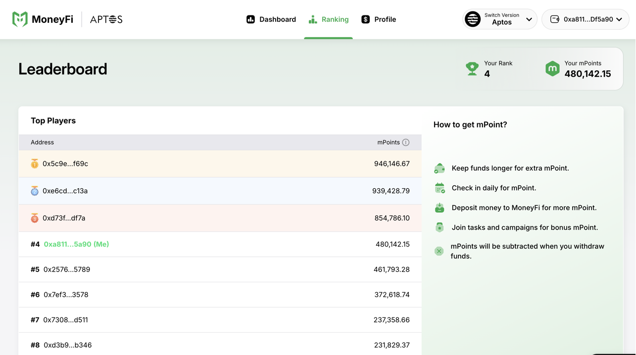 MoneyFi is a one-stop shop for stablecoin monetization on Aptos, is an AI-driven DeFAI platform that simplifies earning for non-DeFi users. It integrates top protocols, offering optimized APR, auto-compounding, auto-rebalancing, and smart fund allocation for maximum returns. Achievements: Top 1 Hackathon - Aptos GM Vietnam 2025, Top 10 Google Cloud Web3 Fellowship, Top 10 MVP Aptos Bootcamp 2025, 30K+ community, 20+ DeFi partnerships. Audited by Movebit and Beosin.