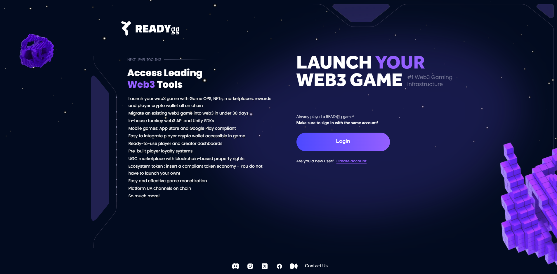 READYgg offers a comprehensive Web3 gaming ecosystem that includes a Unity, Unreal and Godot SDKs for game development, an NFT marketplace, a full featured web3 gamification backend and tools for monetizing games through blockchain technology.