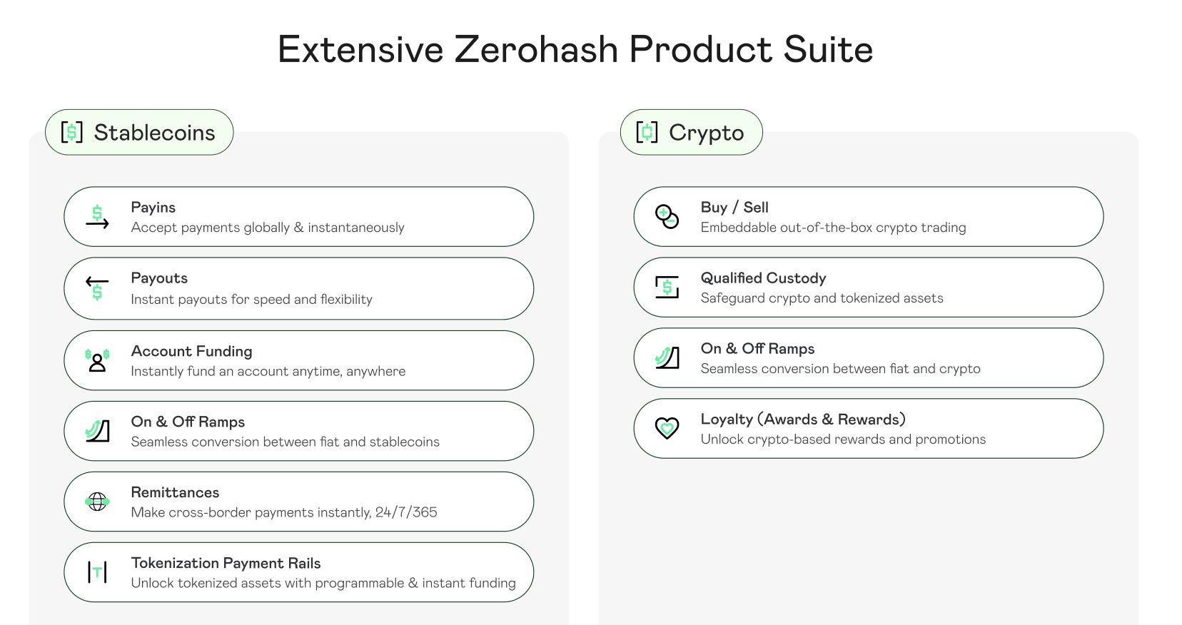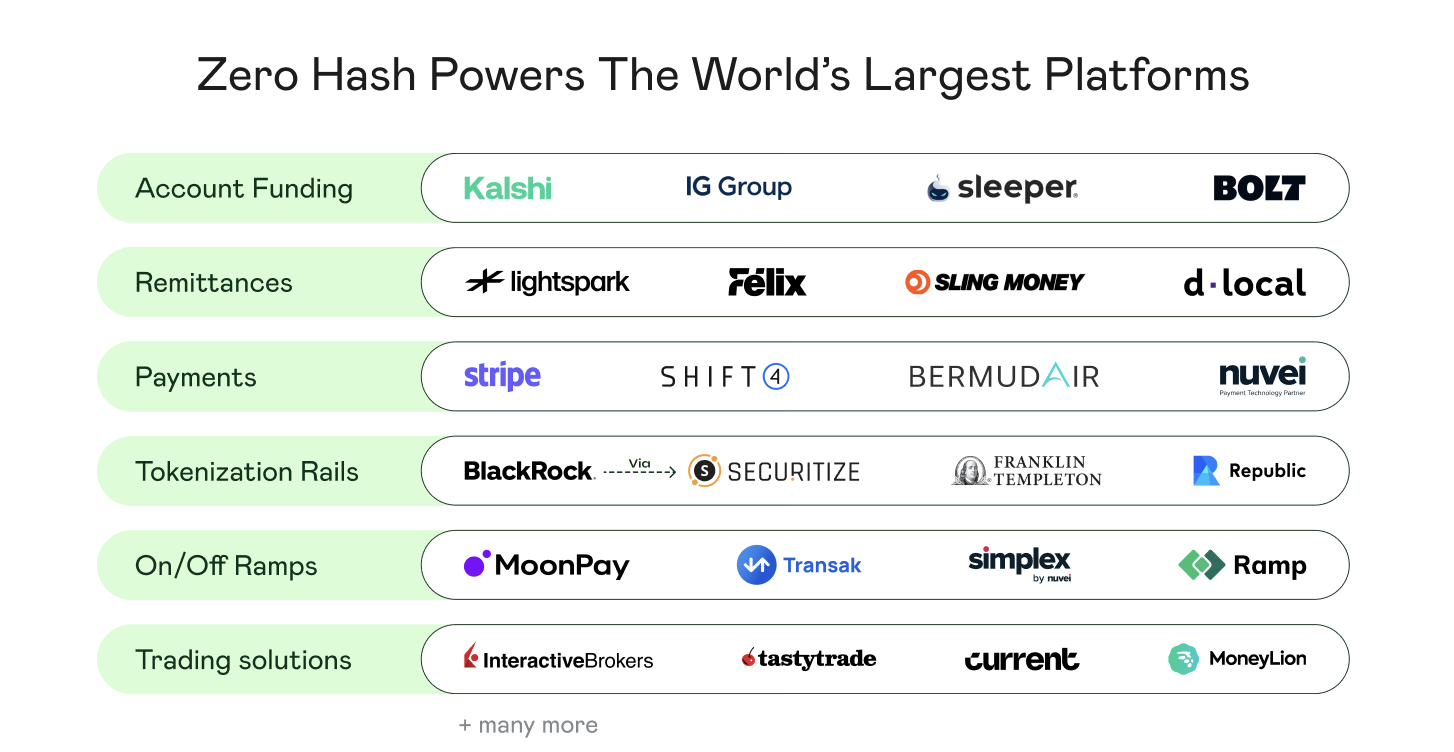 Crypto-asset settlement and infrastructure platform, enabling businesses to onboard, custody, and settle digital assets. Zerohash is the leading infrastructure provider for crypto, stablecoins, and tokenized assets. Our API and embeddable dev-kit enables innovators to easily launch solutions across cross-border payments, commerce, trading, remittance, payroll, tokenization and on/off-ramps.